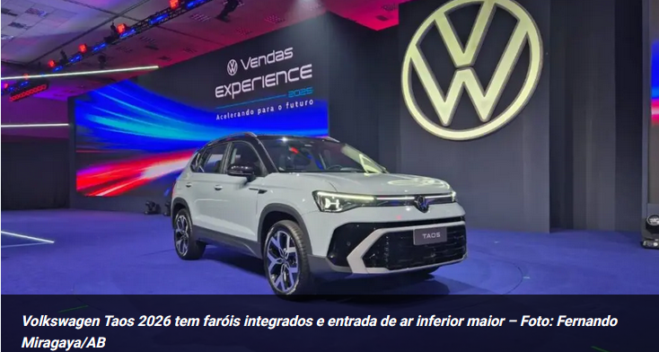 Entre-eixos maior da categoria. Melhor 0-100 km/h. Maior porta-malas. A Volkswagen se concentrou nas mesmas virtudes do SUV para embalar a apresentação do Taos 2026, que foi reestilizado e vai ter de seguir com tais argumentos para tentar virar o jogo na categoria de médios.