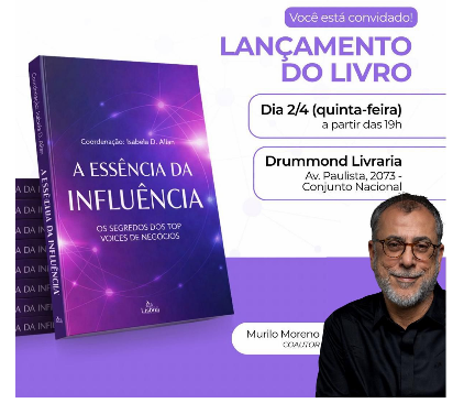 Nesta quinta-feira – logo mais as 19h – na Drumond Livraria – Av Paulista, 2073 – Conjunto Nacional, o livro “A ESSÊNCIA DA INFLUÊNCIA” de Murilo Moreno.