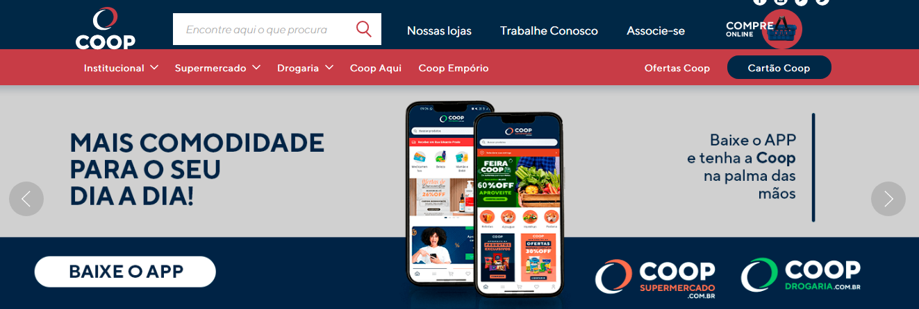 A Coop possui cerca de 35 unidades de supermercado e 69 drogarias, concentradas no estado de São Paulo, principalmente no Grande ABC, além de cidades como Sorocaba, Piracicaba, Tatuí e outras. As lojas oferecem serviços físicos, compra online e entrega.